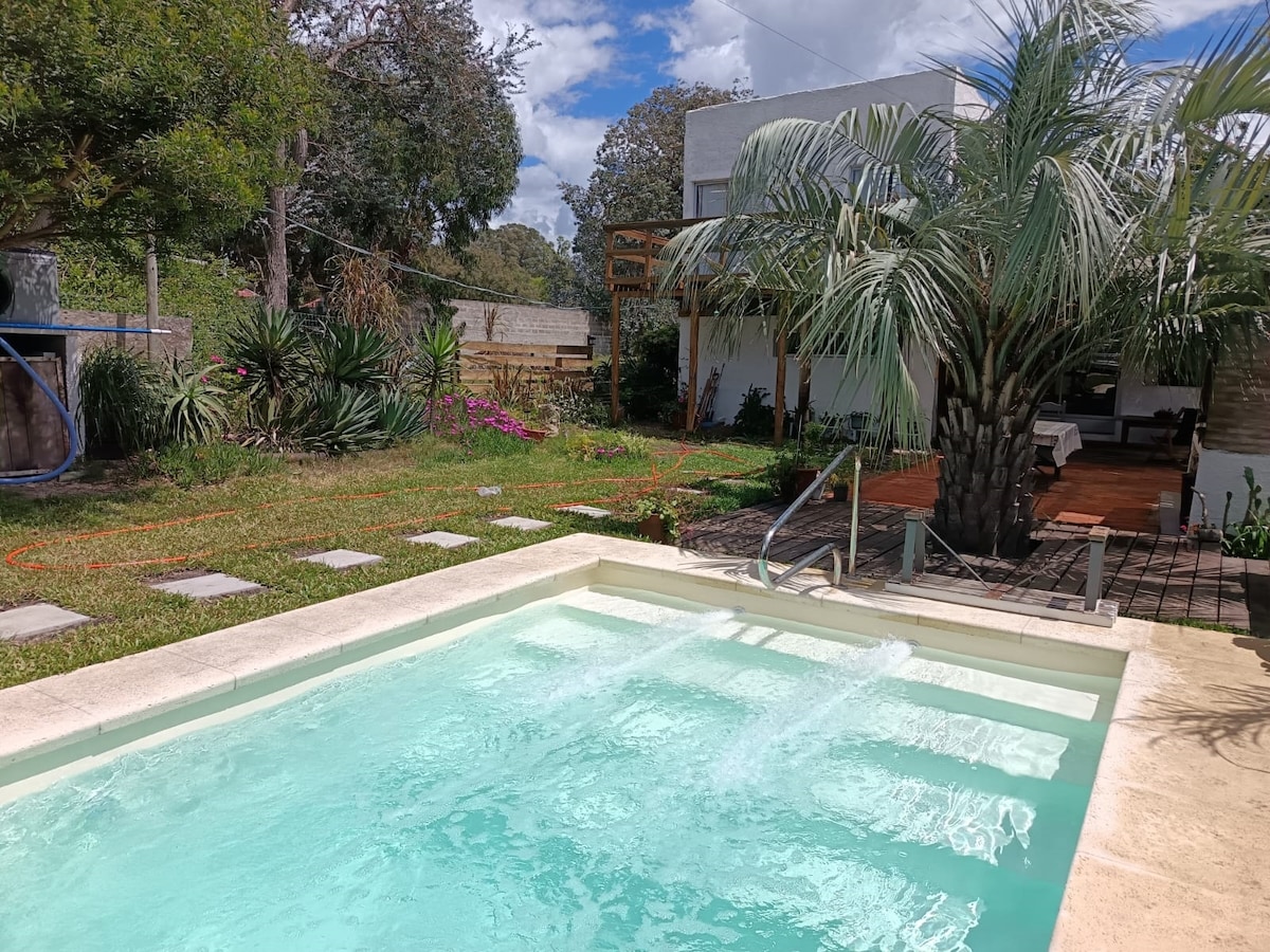 La piscina no está disponible de Abril a Octubre. Casa particular. Relájate con toda la familia en este alojamiento donde la tranquilidad se respira. Se aceptan mascotas - perímetro cercado. Calle cerrada sin tránsito. *Piscina climatizada de 1.5mt. 4 Dorm. independientes uno de otro. 1 con cama de 2 plazas en planta baja, con aire acondicionado . Tres en planta alta con acceso por escalera caracol y salida al balcón. . Lugar bajo techo en caso de lluvia. Se permiten festejos familiares.