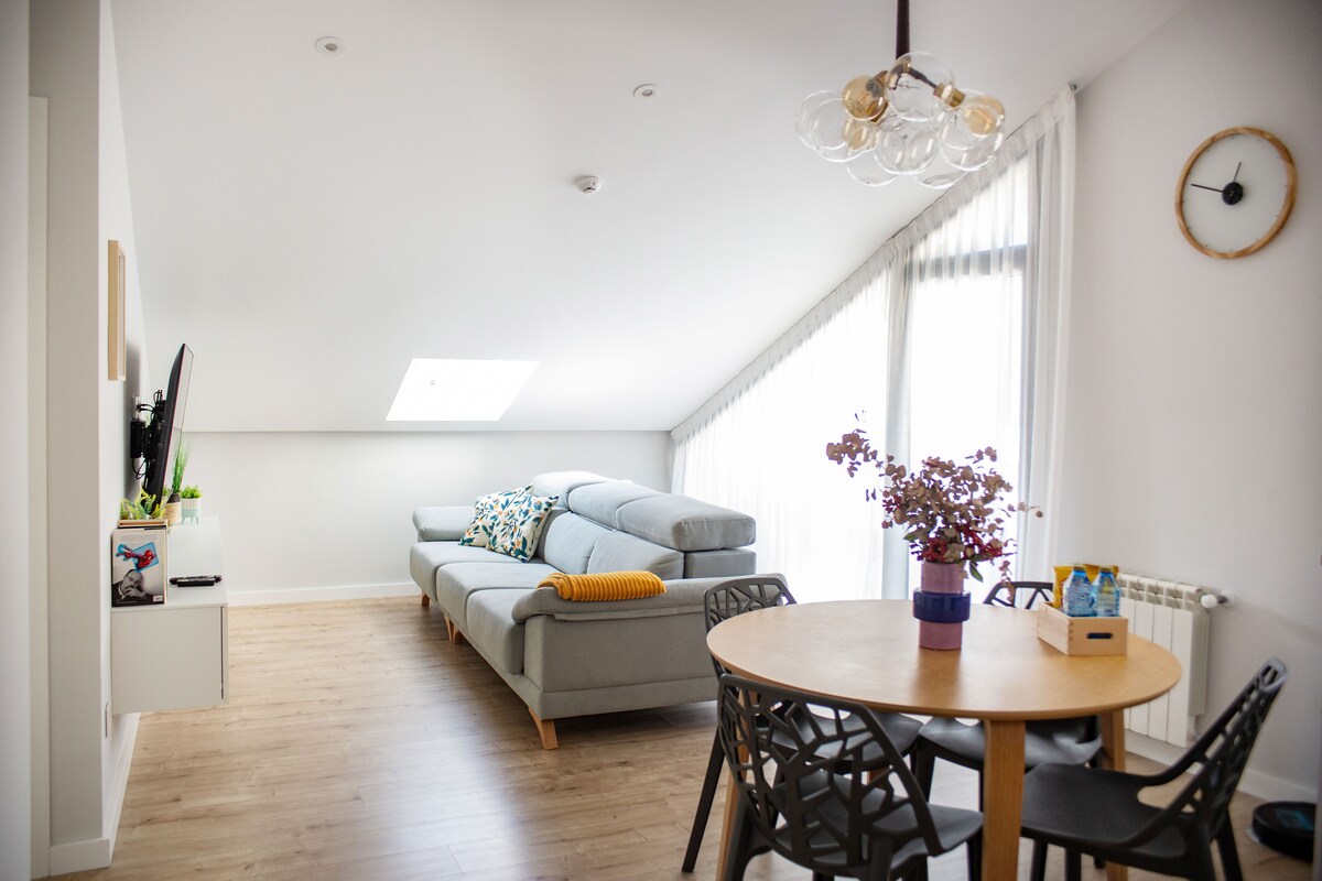 Ático amplio y luminoso, idealmente situado a escasos metros de la playa y del centro, para que disfrutes de la comodidad de desplazarte por Cangas sin necesidad de coger el coche. El apartamento está ubicado en una calle peatonal muy tranquila detrás del paseo marítimo, donde encontrarás bares, restaurantes y terrazas al lado del mar. La opción ideal para alojarte en Cangas en cualquier época del año, tanto para un fin de semana en pareja, como unas vacaciones entre amigos o en familia.