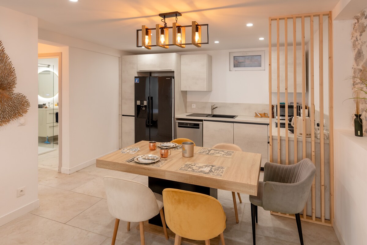 Loft reformado de 49 m2 en pleno centro de Niza frente a la estación de tren SNCF - ¡ideal para descubrir la Riviera Francesa! Este alojamiento dispone de una magnífica cocina americana totalmente equipada, un baño con ducha italiana+bañera en isla y lavabo doble, una sala de estar con sofá cama de 2 plazas, aire acondicionado móvil, chimenea eléctrica, un gran vestidor y un altillo de 90 cm de altura con cama doble. Este alojamiento dispone de todas las comodidades para una estancia con amigos o familia.