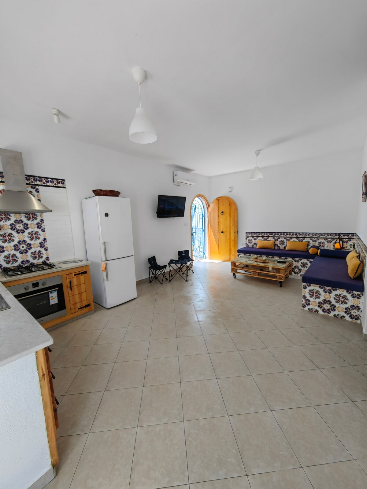 Situada a 100 m de la playa de Sidi Ali El Mekki, casita a estrenar. Lugar ideal para estancias inolvidables en pareja, en familia o con amigos. Entorno natural y auténtico, muy bien equipado y equipado para ofrecer el máximo confort. Una persona que vive justo al lado puede ayudarlo y aconsejarle en cualquier momento sobre su estadía. Tenga en cuenta que todos los Colchones, Ropa de cama, son nuevos y cuidamos la calidad de la limpieza y la higiene para cada alquiler.