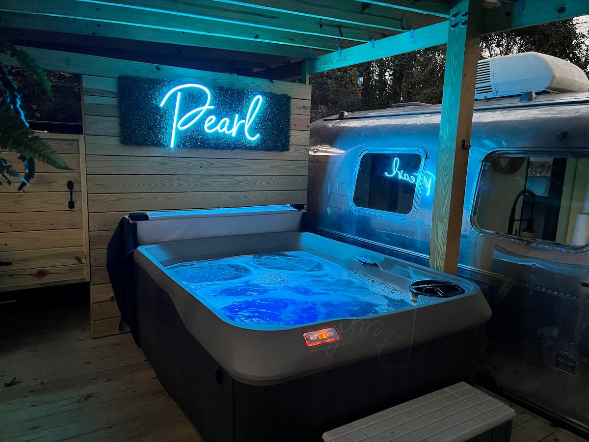 ¡Escápate a un Airstream 1972 renovado a solo 6 millas de la playa! Relájate en el jacuzzi privado, disfruta de una ducha al aire libre bajo las estrellas y haz una barbacoa en el porche cubierto. Acurrúcate junto a la hoguera, disfruta de la sauna de barril o explora las tiendas, restaurantes y la playa cercanos. Ubicado en un barrio seguro con aparcamiento gratuito dedicado, carreteras perfectas para caminar o ir en bicicleta, este refugio único ofrece la combinación perfecta de comodidad y aventura para tu próxima escapada.