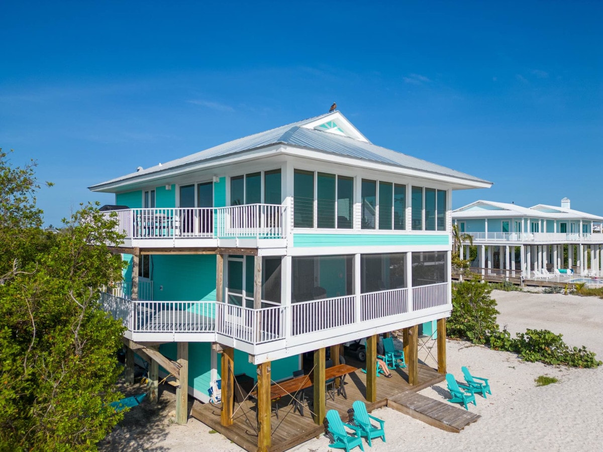 Our renovated home on North Captiva is named "Windows on the Water" because of the spectacular wall of windows facing a pristine, white sandy beach and Captiva Pass. Relax inside or outside on your very own beach, and enjoy views of Cayo Costa Island, sailboats and wildlife including pelicans, manatees and more! We are on the beach and adjacent to 4 acres of private, undeveloped land which makes our home feel peaceful and secluded. 10/10 and 5 star reviews (64+) on the other booking site!