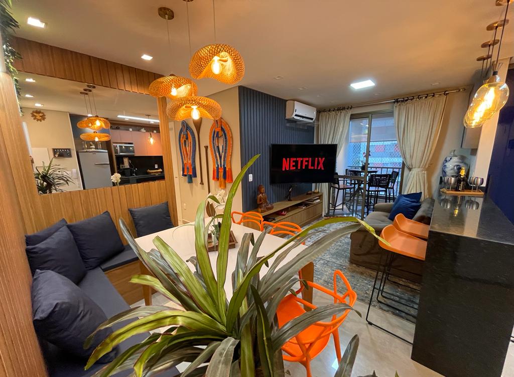 Apartamento en Reserva DNA Ubatuba, ubicado frente a la playa grande. Balcón con vista al mar. Cuenta con dos suites con aire acondicionado y TV inteligente. Aire acondicionado y Smart TV de 50 pulgadas en la sala. Internet propio de 100 MB. También ofrecemos una cervecera Consul y un filtro de agua Eletrolux. Barbacoa gourmet súper cómoda y completa para su mejor estancia con su familia en Ubatuba. La zona común cuenta con piscina climatizada, sauna seca y de vapor y un espectacular jacuzzi y cine.