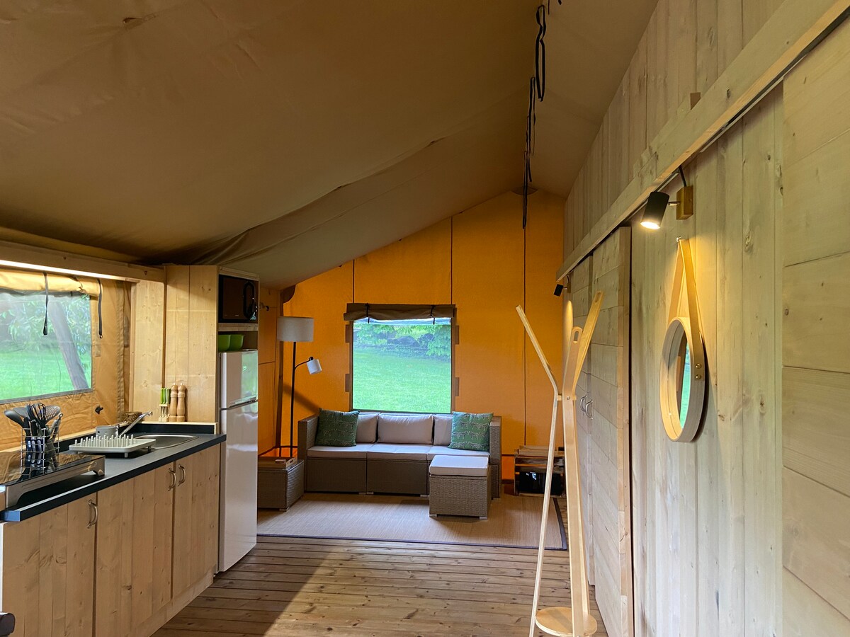 tienda confort tipo «lodge» granja orgánica de La Gravelle