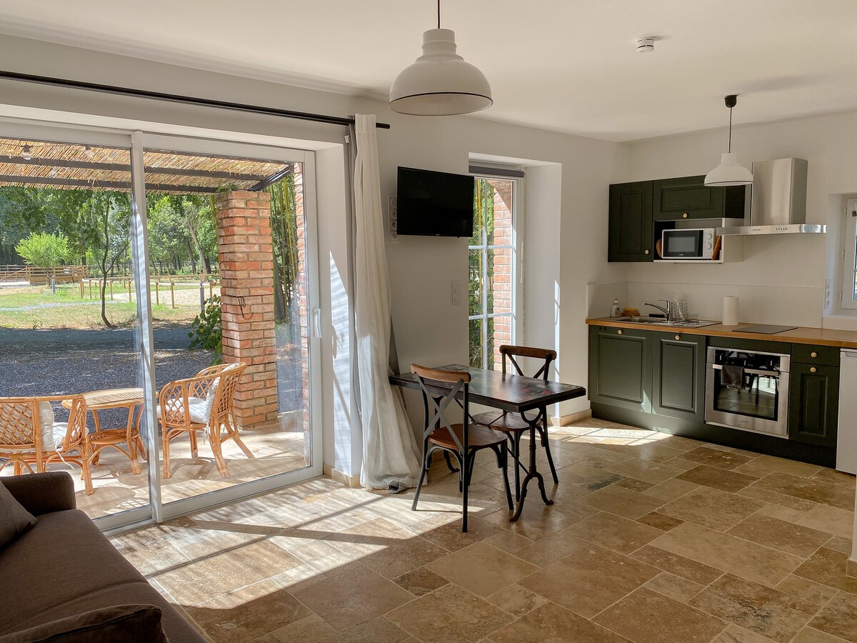 El taller es un lugar realmente único. En una burbuja de naturaleza, este loft de alta gama de 100 metros cuadrados tiene todas las comodidades para que pueda pasar una estancia relajante. La piscina privada y climatizada con vistas a los robles de los alrededores garantiza una inmersión en la garriga, con el canto de los pájaros y las cigarras como fondo sonoro. Todo es nuevo, el mobiliario ha sido cuidadosamente seleccionado para que pueda pasar un momento único.