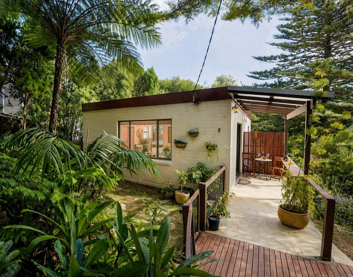 The Garden Studio es un moderno refugio de un dormitorio en el Parque Nacional Real, al sur de Sídney. Rodeado de prístinos matorrales y playas, este tranquilo escondite ofrece una mezcla perfecta entre naturaleza y comodidad. Disfruta de la cocina de planta abierta y el salón que conduce a una terraza cubierta con vistas a tu jardín privado. Arriba, el acogedor dormitorio loft con baño privado se abre a una terraza soleada, ideal para sumergirse en la belleza natural. A poca distancia en coche de Sídney, ¡The Garden Studio es tu escapada ideal!