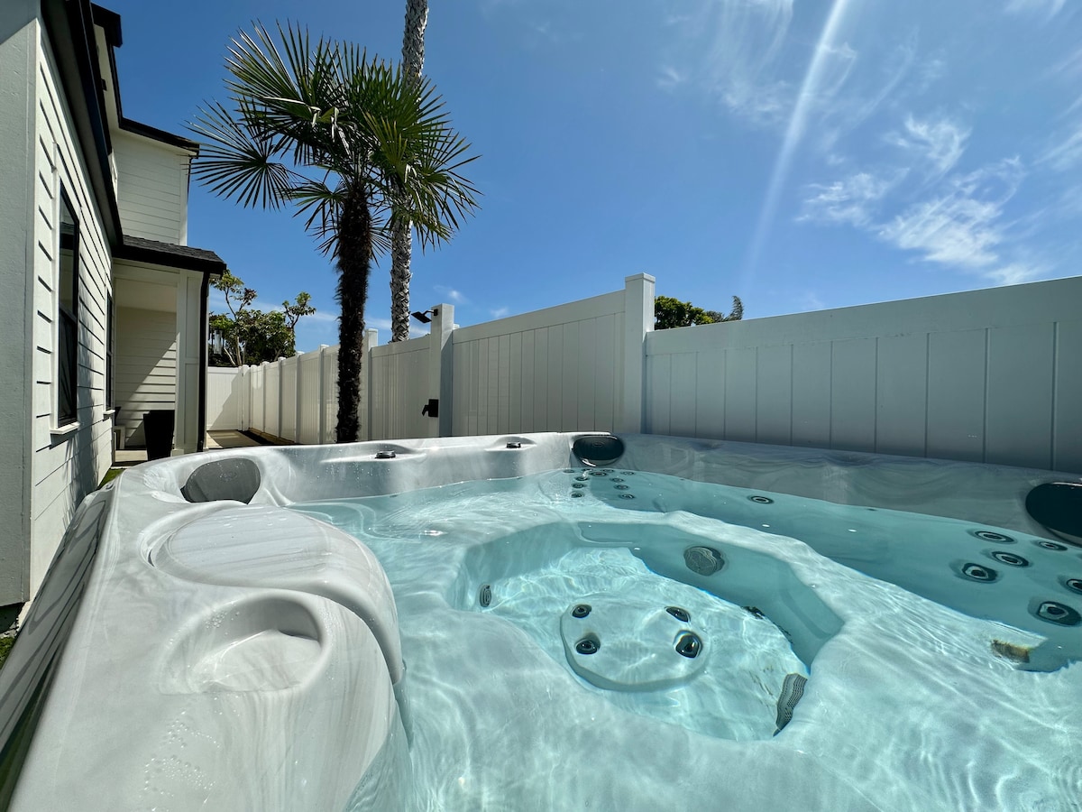 Bienvenido a nuestro refugio de 4 dormitorios en Carlsbad, donde el encanto mediterráneo se une al lujo junto a la playa. Este tranquilo refugio combina la elegancia con un ambiente costero relajado, perfecto tanto para escapadas tranquilas como para aventuras llenas de acción. Disfruta de nuestro impresionante oasis al aire libre, completo con jacuzzi, ducha al aire libre, muebles de salón, parrilla y fogatas, todo diseñado para mejorar tu experiencia en la costa de Carlsbad.