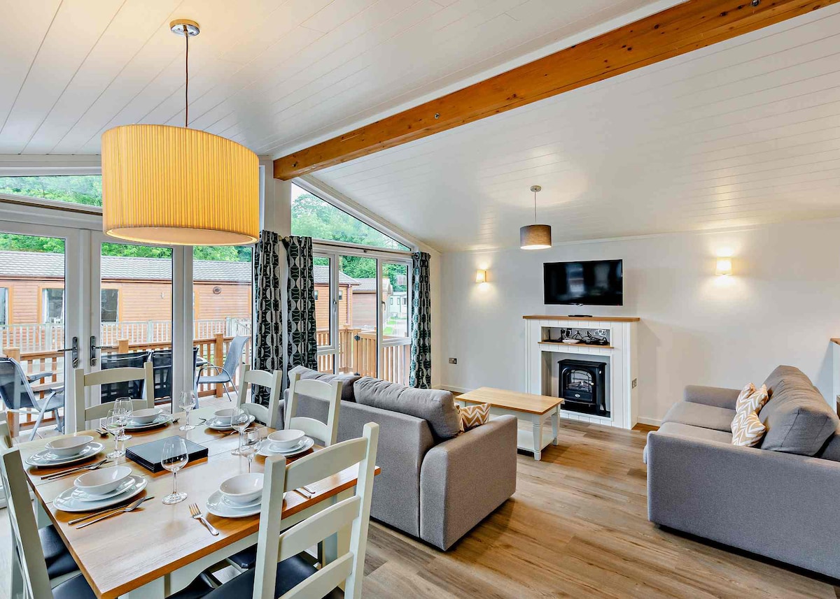 Woodside Lodge is a large, privately owned four-bedroom holiday home set within Elmrise Park, a quiet residential park near the Welsh coast. Sleeping up to eight guests, it offers generous space for families or small groups looking for a relaxed base from which to explore Carmarthenshire, Llansteffan beach, and the surrounding countryside. This is not a busy holiday park, but a peaceful community of privately owned homes, making it ideal for guests who value space, privacy, and a slower pace.