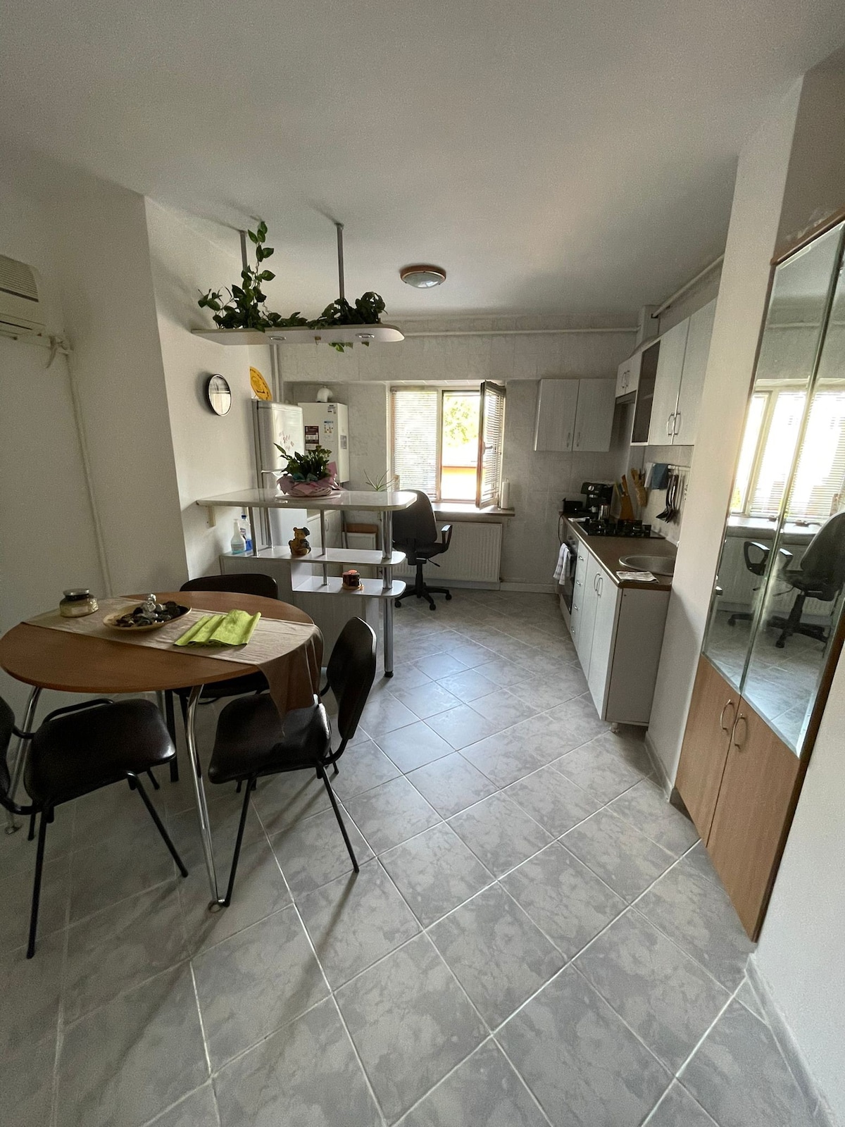 Apartamento en un barrio tranquilo. ¡El apartamento está desinfectado con una lámpara germicida después de cada huésped!). ¡Muebles modernos recién renovados! El centro de la ciudad está a pocos minutos en auto y a 10 minutos en transporte público. Se proporciona un espacio cerrado y cubierto para el auto, que se encuentra a pocos metros frente a la puerta del apartamento, para que no tengas que molestarte con el equipaje en las escaleras.