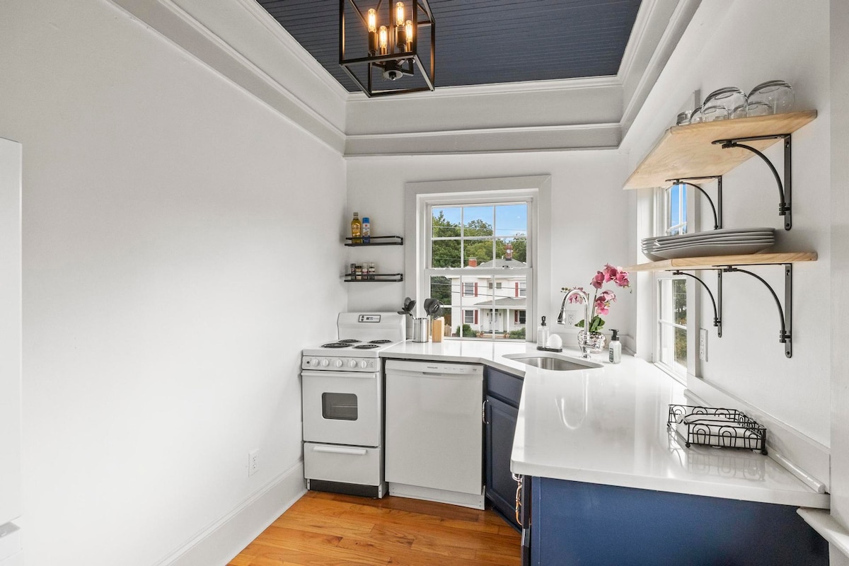 Te encantará la ubicación y el encanto de este apartamento renovado de 1 dormitorio en una casa histórica del centro de Raleigh dividida en cinco unidades únicas. Ubicado en el segundo piso, cuenta con suelos de madera originales, techos altos, muebles nuevos, una acogedora cocina totalmente equipada, baño remodelado, amplio vestidor y una cómoda cama tamaño king. Disfruta de un espacio elegante y acogedor a pocos pasos de los mejores restaurantes, cafeterías, bares y atracciones de Raleigh, así como a poca distancia del parque Fletchers de 22 acres. Aparcamiento gratuito.