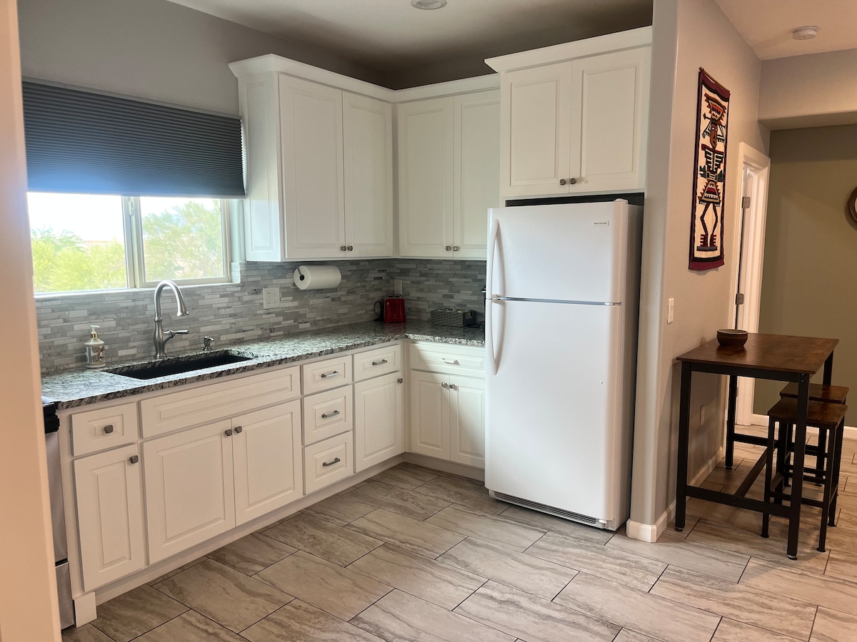 ¡El escondite perfecto en el desierto en una comunidad tranquila, pintoresca y segura! Esta suite de invitados es sencilla, limpia y luminosa, con acceso privado y vistas a las montañas y a la ciudad. Senderismo espectacular a menos de 3 millas de distancia, a 20 minutos en coche del centro de la ciudad y a menos de 5 minutos de gimnasios, restaurantes, tiendas de comestibles, farmacia, gasolinera, etc. A los anfitriones les encantaría ayudarte a sentirte como en casa y tener la mejor estancia posible. ¡Son nativos de Tucson con muchas recomendaciones y consejos de expertos!