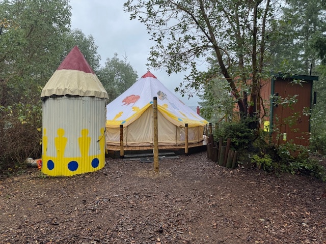 This is 20ft Top of the line Bell Tent, with a separate heated bath hut and small cook hut is located in Lakebay, WA. Views across Puget Sound & Gorgeous sunrises and sunsets, deer in the yard and bald eagles soaring above. This is glamping at its finest. When you wake in the morning, for heat you have central heating from a real furnace. Lying in bed you can control lights, Smart TV, and even a google hub. We can add a 4 people tent as well as a ‘pak ‘n play for infants upon request.