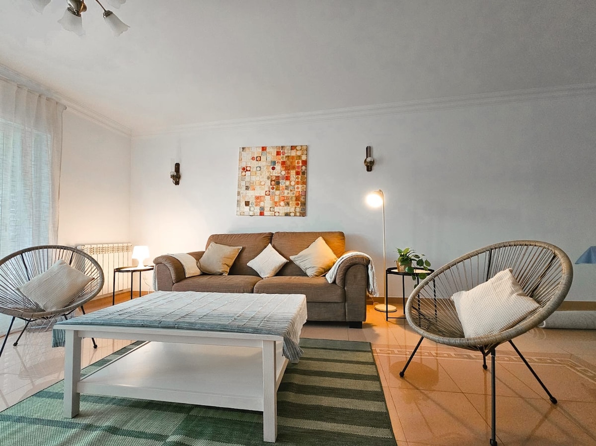 ¡Bienvenidos a nuestra villa! está en una ubicación privilegiada, a solo 2,9 km de la playa de Ribeira y cerca de atracciones famosas como Campos de Lápias y el faro de Guia. A menos de 200 metros, encontrarán supermercados, restaurantes y bares para sus necesidades diarias. La estación de tren está a solo 2,3 km, lo que hace que el transporte sea muy conveniente. Toda la villa puede alojar cómodamente a 10 personas, ideal para familias y grupos de amigos. ¡Esperamos que disfruten de su estancia