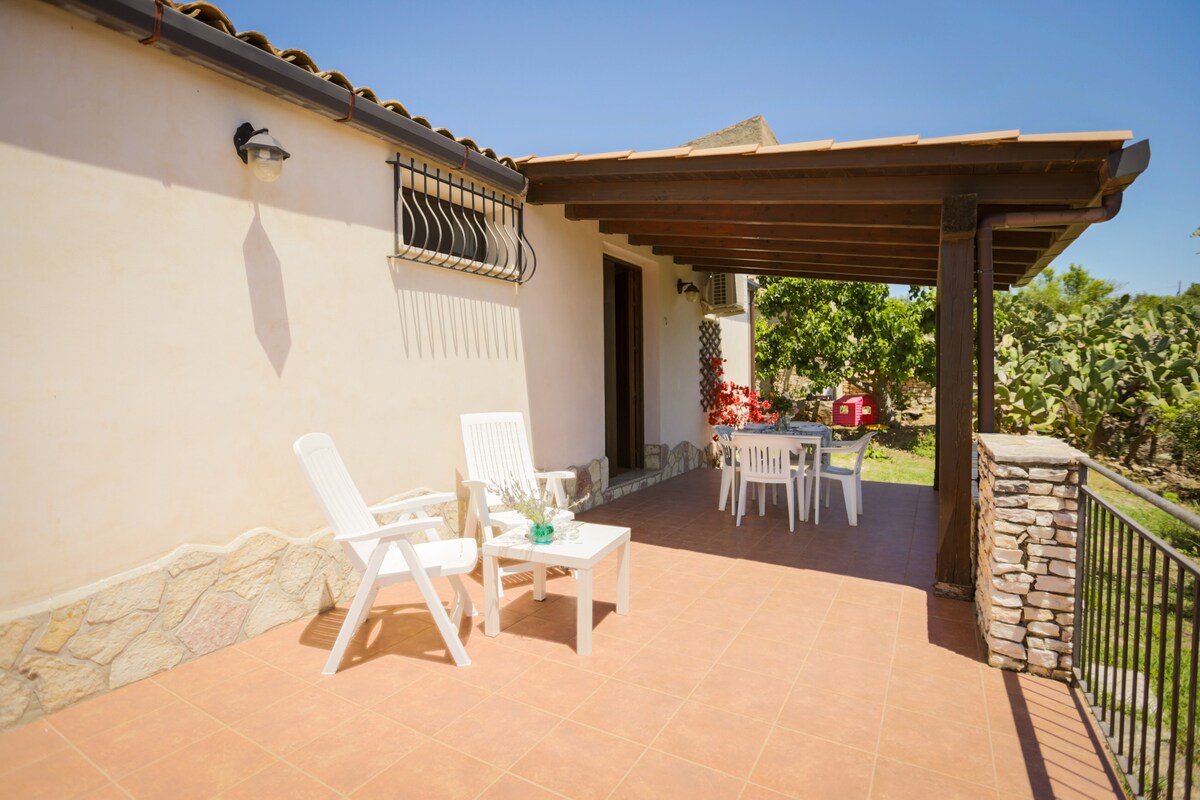 Alojamiento con encanto en el campo, forma parte de una casa de campo reformada. Silencioso, tiene una gran terraza con espléndidas vistas al campo, el mar y la montaña. El jardín (4000 m²) está lleno de higos chumbos, olivos, limones y alberga un rincón de relax. La carretera de acceso da a la «Cala Bianca», llamada así por el color del acantilado. El mar está a 300 m y se puede llegar por dos senderos peatonales (desnivel de 60 m). En la costa hay un arco natural, una cueva con una Virgen y un islote.