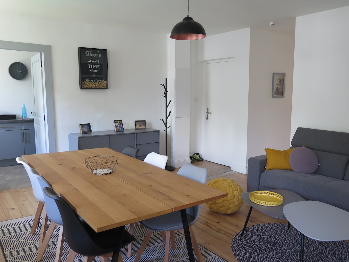 Centro de la ciudad en un pequeño pabellón de una sola planta situado en un jardín tranquilo, estudio nuevo de 27 m2. En la planta baja: cocina, baño completo, aseo independiente, salón-comedor con sofá cama, dormitorio grande en el ático con acceso por escalera de molinero retráctil Posibilidad de almacenamiento para bicicletas, esquís... Así como una zona de jardín amueblada. Los 10 euros corresponden al suministro y mantenimiento de la ropa de cama, la limpieza del estudio corre a su cargo.