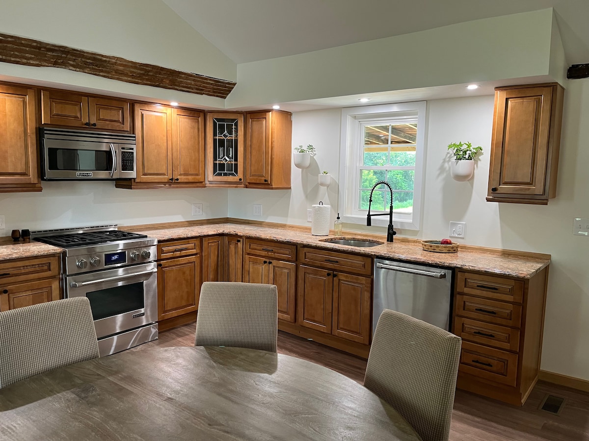 Este apartamento totalmente renovado, contemporáneo y acogedor se encuentra en un edificio separado, justo al lado de nuestra casa principal. ¡1000 % mejor que cualquier habitación de hotel! Los servicios incluyen microondas, lavavajillas, lavandería, agua potable filtrada, cafetera Ninja, tostadora, gofrera, calefacción y aire acondicionado, internet de alta velocidad y TV inteligente. Ofrecemos ropa de cama limpia, toallas, artículos de aseo, aperitivos de cortesía, café y té, leche, crema, condimentos, etc. Por favor: no se admiten mascotas, no se puede fumar ni dentro ni alrededor, no se pueden celebrar fiestas, no más de 4 huéspedes.