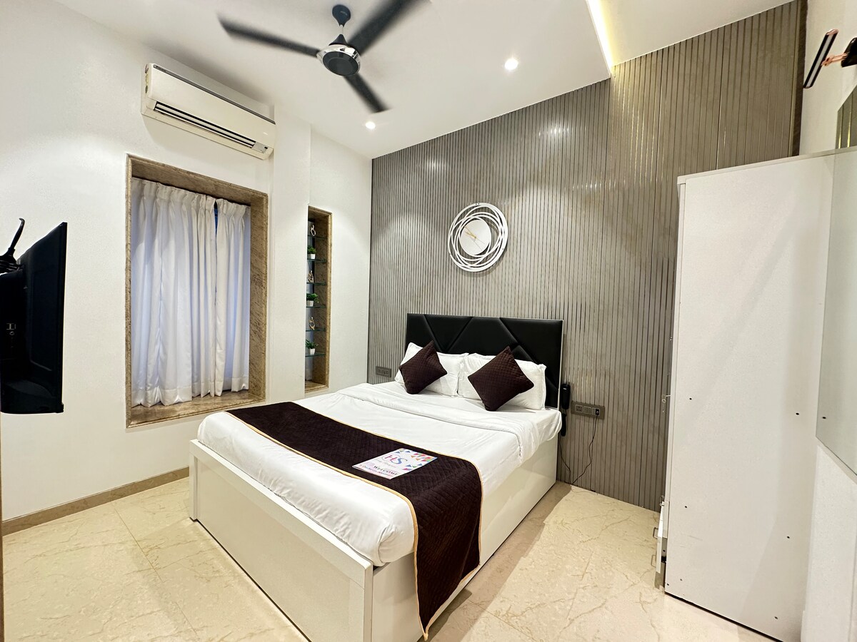 Roy Bari: apartamento de servicio privado de lujo y premium de 3 dormitorios en la mejor ubicación en CBD Belapur con vistas al aeropuerto, al mar y a Parsik Hill. >Perfecto para familias, empresas, parejas, estudiantes, pacientes. >Tiene capacidad para 9 personas. >3 habitaciones con balcones y baños anexos. Hay un cuidador disponible en la propiedad. > Cocina totalmente equipada, comedor, área de lavado, área de lectura y sala de estar con Smart TV y wifi de 300 mbps. >Propiedad apta para mascotas.