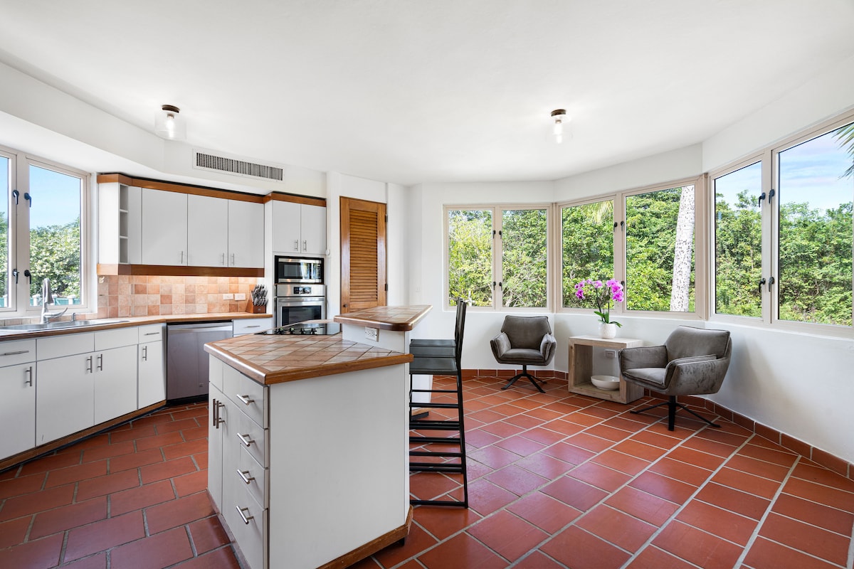 Wake up to the sound of the waves as they hit the shores of Puerto Nuevo beach (and step straight from your deck onto the sand). At this spacious oceanfront getaway you’ll enjoy balconies with sweeping views, spacious living areas, and a kitchen made for mofongo nights. Spend mornings exploring the hidden coves of Manati and Puerto Nevo’s natural pools before returning home to your own; in the evening, drive over to San Juan for live music and pastelillos by the bay.