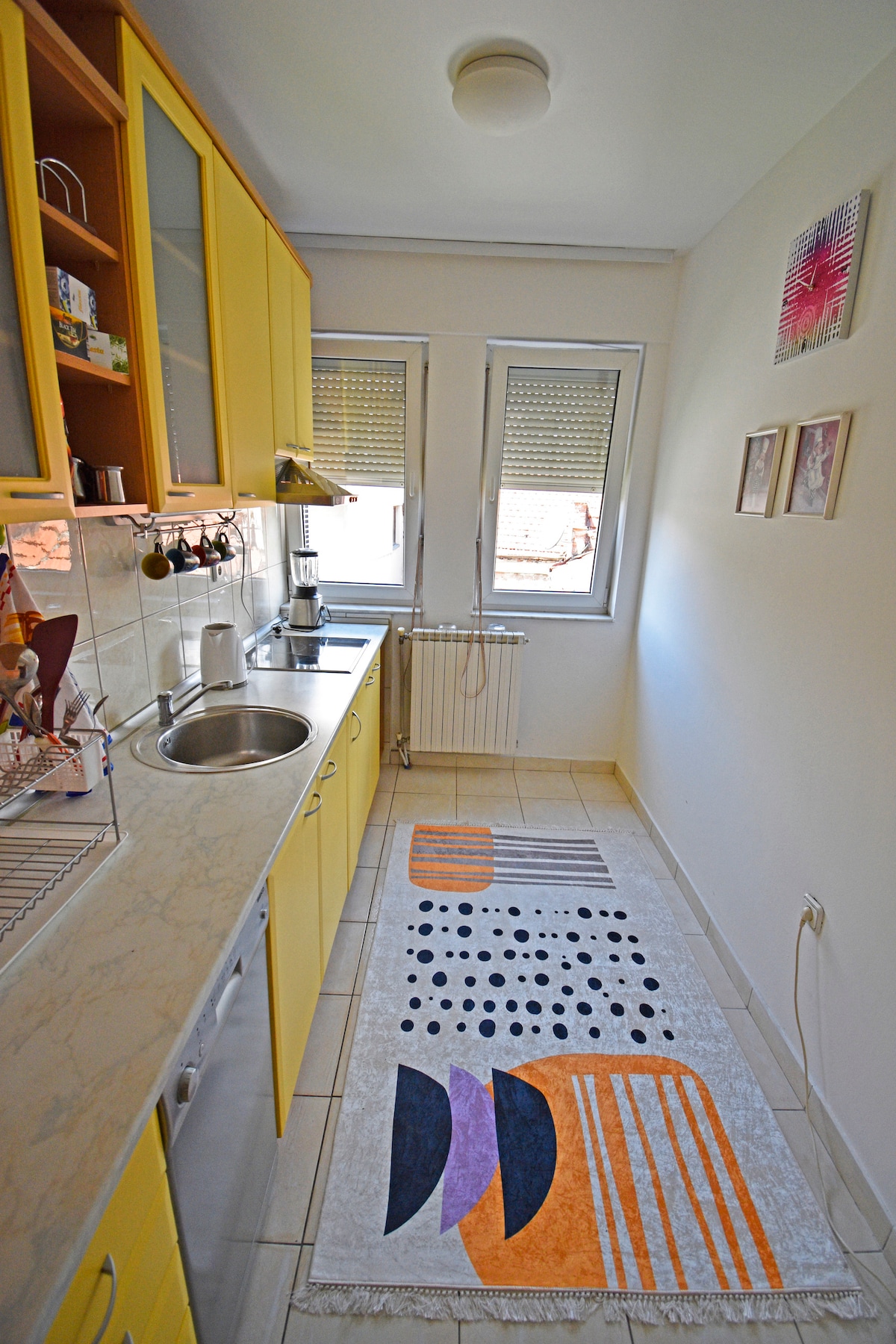 El apartamento contiene: 1. Baño: - Calentador de agua - Respirador - calefacción - toallas - Jabón - Gel de ducha - Champú - zapatillas - Papel higiénico 2. Cocina: - Agua caliente - Nevera - Minihorno - Tostadora - platos, cucharas, tenedores, cuchillos, vasos, ollas y sartenes 3. Sala de estar/dormitorio - Aire acondicionado. - Calefacción central. - Wifi súper rápido gratuito - Una televisión con más de 50 canales (como Arena Sport 1, tv 1000, Fox Life, etc.). - Dos camas individuales. - Una mesa. - Un armario. - una plancha - Un secador de pelo - Mantas y sábanas