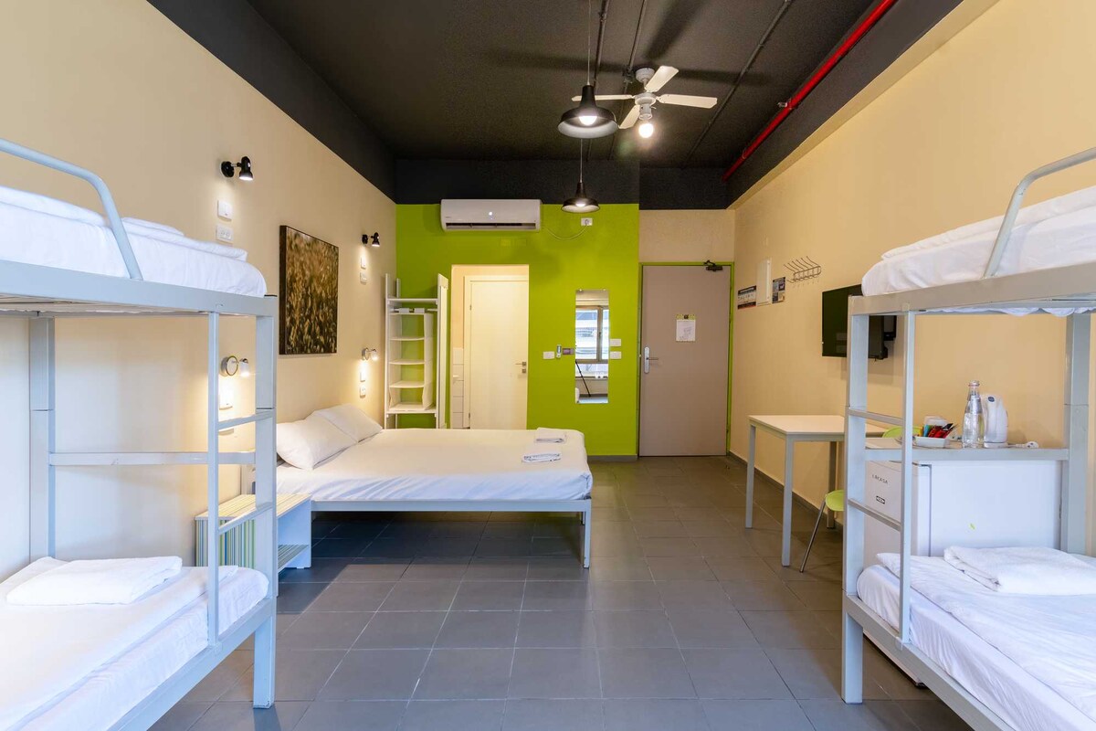 Nuestra habitación compartida para mujeres asequible y elegante es la opción perfecta para las mujeres que viajan en busca de comodidad y conveniencia en Tel Aviv. Con 7 camas acogedoras, ducha e inodoro privados y una ubicación privilegiada en uno de los mejores barrios de la ciudad, nuestro albergue ofrece todo lo que necesitas para una estancia agradable. Ya sea que estés explorando la ciudad sola o con amigos, nuestra habitación compartida femenina es un lugar acogedor y agradable para descansar la cabeza