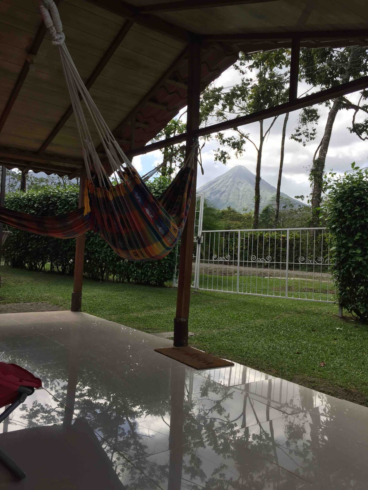 We have a brand new home close to town good location one block from the local swinging hole " El Salto " Excellent Volcano view Casa nueva con finos acabados, con garaje, cerca de La Fortuna, para tres huéspedes, cerca de sitios turísticos con vista al volcán arenal, camas y electrodomésticos nuevos. Se brinda experiencia en asesoría turística.