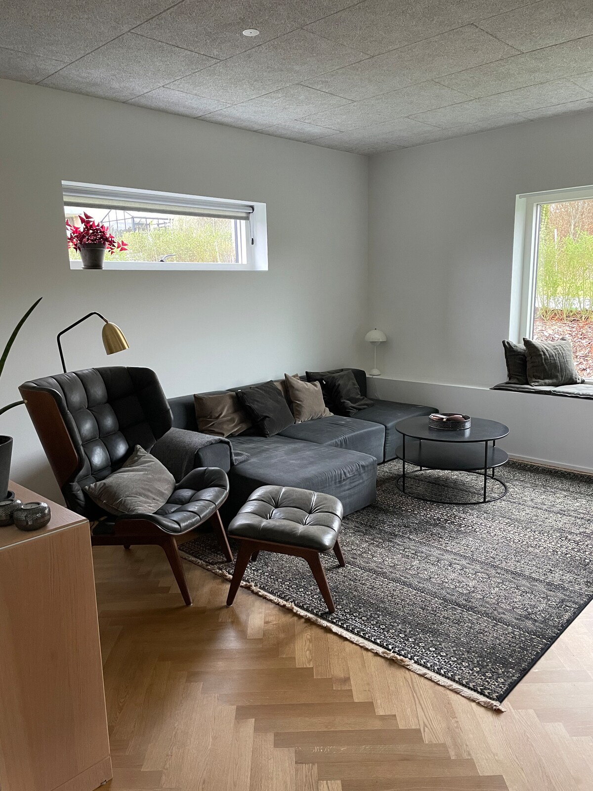 Nueva casa de huéspedes moderna de un total de 240 m2 en un entorno tranquilo y idílico en el campo. Esta casa única está a solo 7 minutos del centro de la ciudad de Herning y a 10 minutos de Herning Messecenter. La casa consta de 2 habitaciones con cama doble, TV y armarios. Un inodoro y un baño con ducha y un inodoro. Cocina con equipo completo y gran mesa de comedor. En el primer piso hay un gran sofá y un cine en casa.