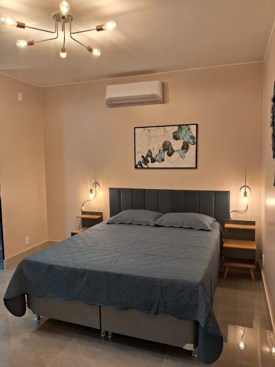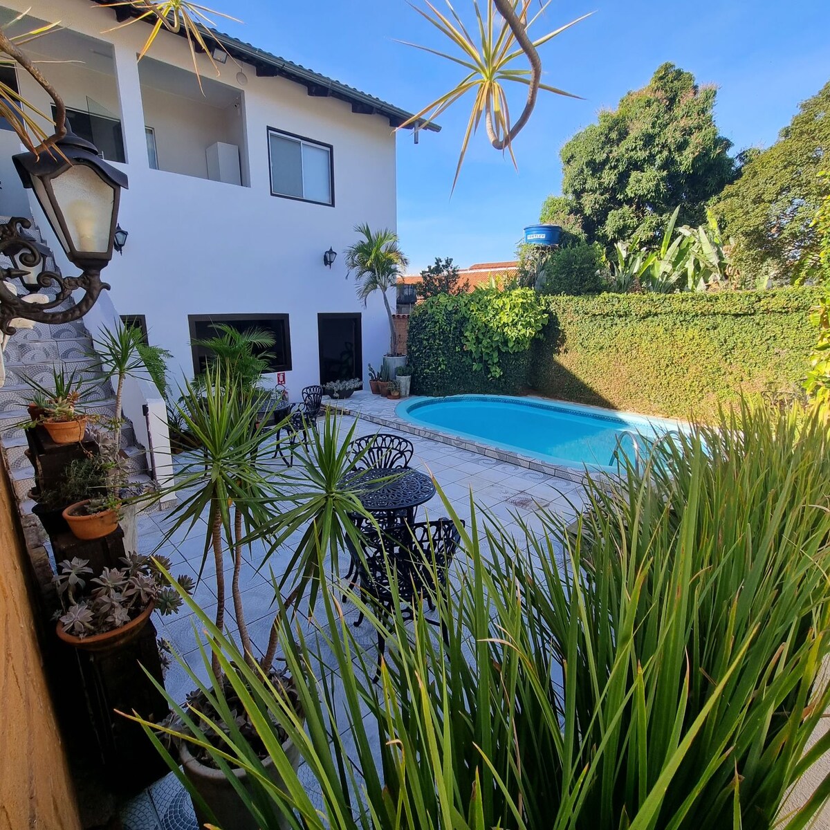 Acogedora suite doble con cama Queen Size, Internet de alta velocidad, TV inteligente con sistema SKY, ventilador de techo, secador de pelo y baño privado con ducha eléctrica. En el centro de Monte Alegre do Sul, tranquilidad, lugar silencioso, cerca de todo. Aprovecha para pasear por el centro histórico, disfrutar de las fuentes de agua mineral y la naturaleza, visitar alambiques, bodegas y mucho más. Tarifa diaria con un delicioso desayuno incluido. Perfecto para descansar y disfrutar de la naturaleza.