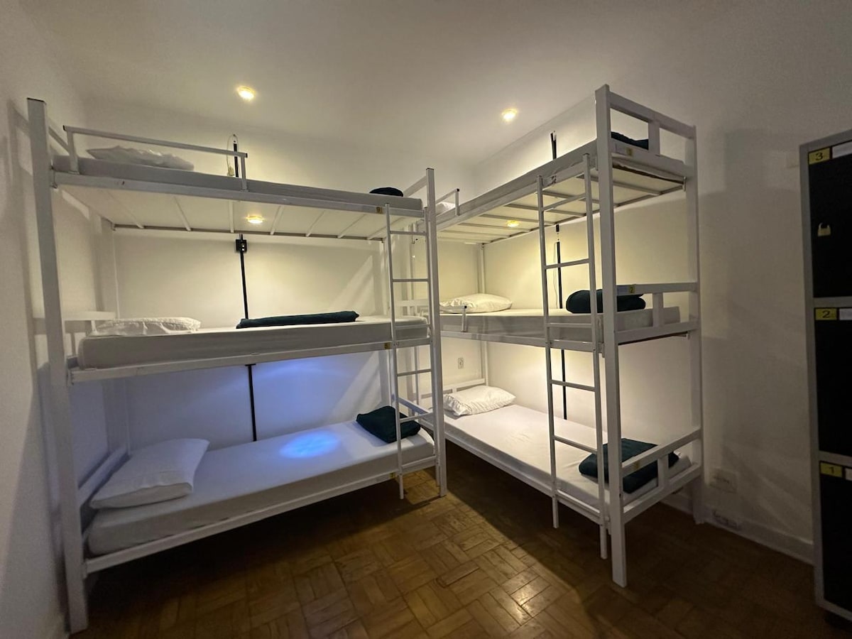 Nosso hostel oferece quartos compartilhados confortáveis e organizados, equipados com beliches modernos com cortinas individuais, garantindo mais privacidade durante a sua estadia. Cada cama possui tomada, e o ambiente é arejado e limpo diariamente.Uma ótima opção para viajantes, mochileiros e grupos que buscam conforto e economia.
