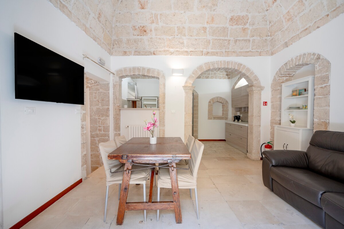 Casa De Amicis, una residencia histórica donde vivir una experiencia única. Construida en piedra de Puglia, un pacto entre la tierra y el hombre, la bóveda de piedra blanca de Puglia hará compañía a tus sueños, una bóveda de piedra símbolo de raíces, refugio y tradiciones. Fuertes ecos de Puglia, confort, atención al detalle y mobiliario hacen que esta casa sea mágica. El ambiente os llevará a historias campesinas, historias de la cultura del sur de Italia y de sabores que enriquecerán vuestras vacaciones.