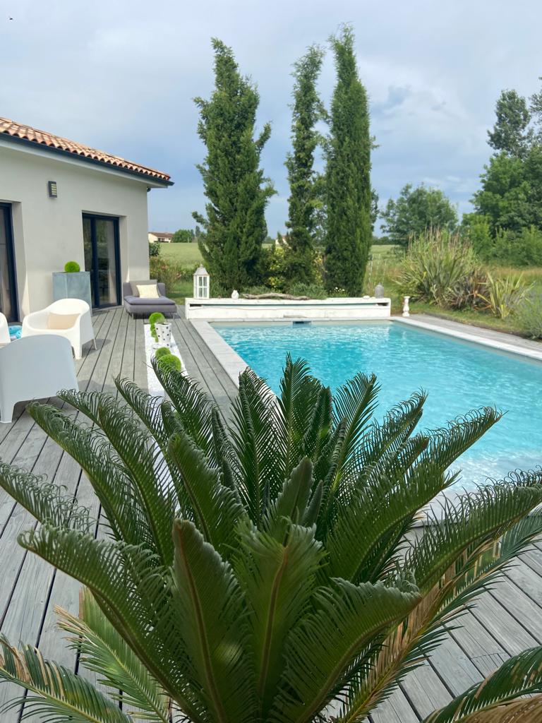 Relájese en este alojamiento tranquilo y elegante. Disfrute de las vistas a los Pirineos, a 25 kilómetros de Toulouse, a 3 kilómetros del canal del Mediodía. Casa adosada que consta de 1 dormitorio (con TV), 1 baño, 1 cocina, 1 comedor y 1 altillo con 2 camas individuales y 1 zona de TV. El aparcamiento, la entrada y la terraza son privados y la piscina es compartida. El conjunto es adecuado para 4 personas y no se recomienda para familias con niños pequeños (<5 años). (escalera, piscina)