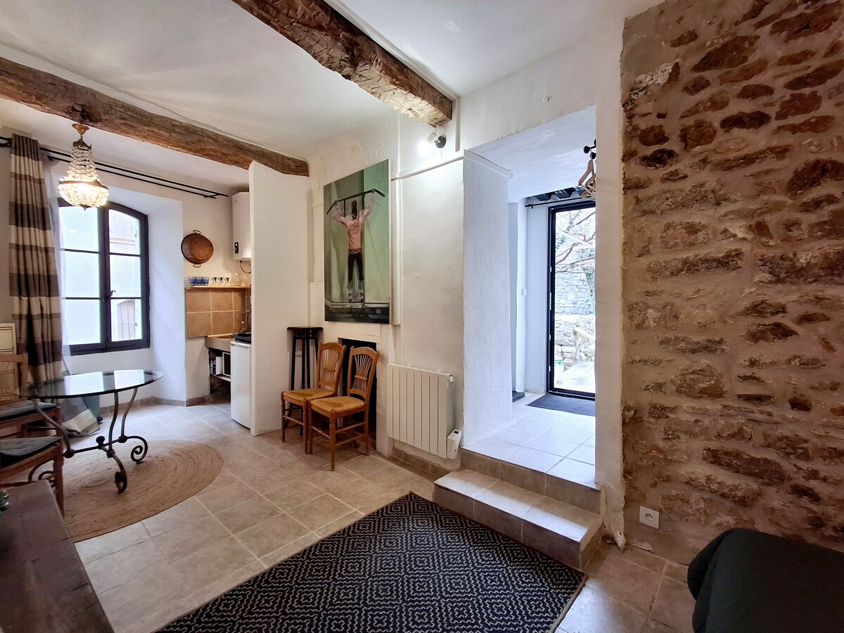 Encantador estudio con terraza y entrada privada en el corazón del Parque Nacional del Luberon. Un punto de partida ideal para explorar sus numerosas maravillas. Ubicado en un entorno de absoluta tranquilidad en el pueblo medieval (Via Domitia), a solo 5 minutos a pie de bares, restaurantes y tiendas. Baño privado, cocineta, jardín pequeño para comer al aire libre, hamaca, almacenamiento para artículos de verano y bicicletas. Piscina pública (julio/agosto), cancha de petanca. Wifi de fibra óptica. ¡Parada de autobús 915 (estación de TGV de Aviñón) a 50 metros!