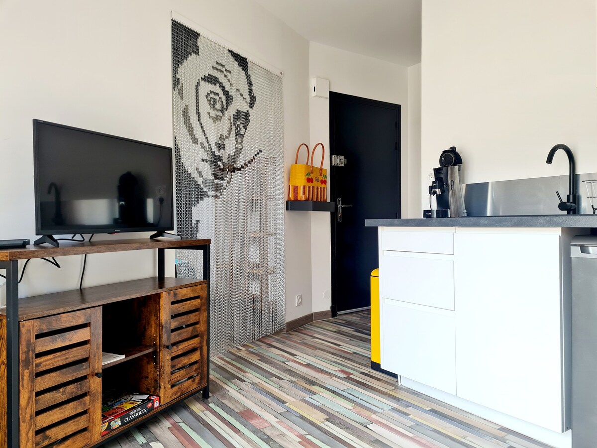Relájese en este bonito y tranquilo estudio de 32 m2 y su bonita terraza sombreada de 20 m2. El alojamiento ha sido completamente renovado y decorado con gusto para que se sienta como en casa. Estarás fuera del centro de la ciudad, a 10 -15 minutos a pie de las calles comerciales y restaurantes, su museo de arte moderno y su gran mercado el sábado por la mañana . El propietario se encuentra cerca del estudio Aparcamiento gratuito en frente de la vivienda. Un plus nada desdeñable.