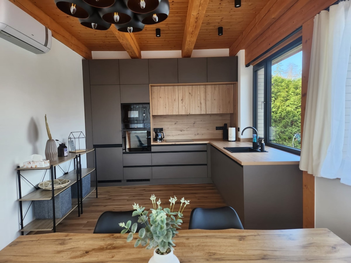 Si le gusta el bienestar y la tranquilidad de la naturaleza, este alojamiento le encantará con su interior moderno y el paisaje tranquilo que lo rodea. Al mismo tiempo, la casa se encuentra a pocos minutos de Hradec Králové. Le esperan una sauna privada y una bañera de hidromasaje de las que se enamorará. La combinación de madera, decoración de hormigón y naturaleza hará las delicias de todos los que se centran en los detalles. Podrá disfrutar de una hermosa vista de la naturaleza mientras lee un libro con una taza de café. Si le gusta hacer barbacoas, sin duda apreciará la parrilla y la chimenea de la casa.