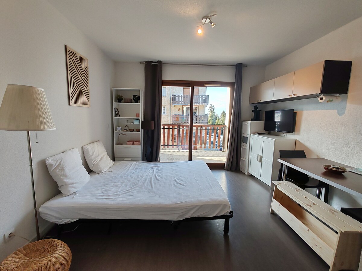 Studio cosy vue montagne terrasse pistes à pied