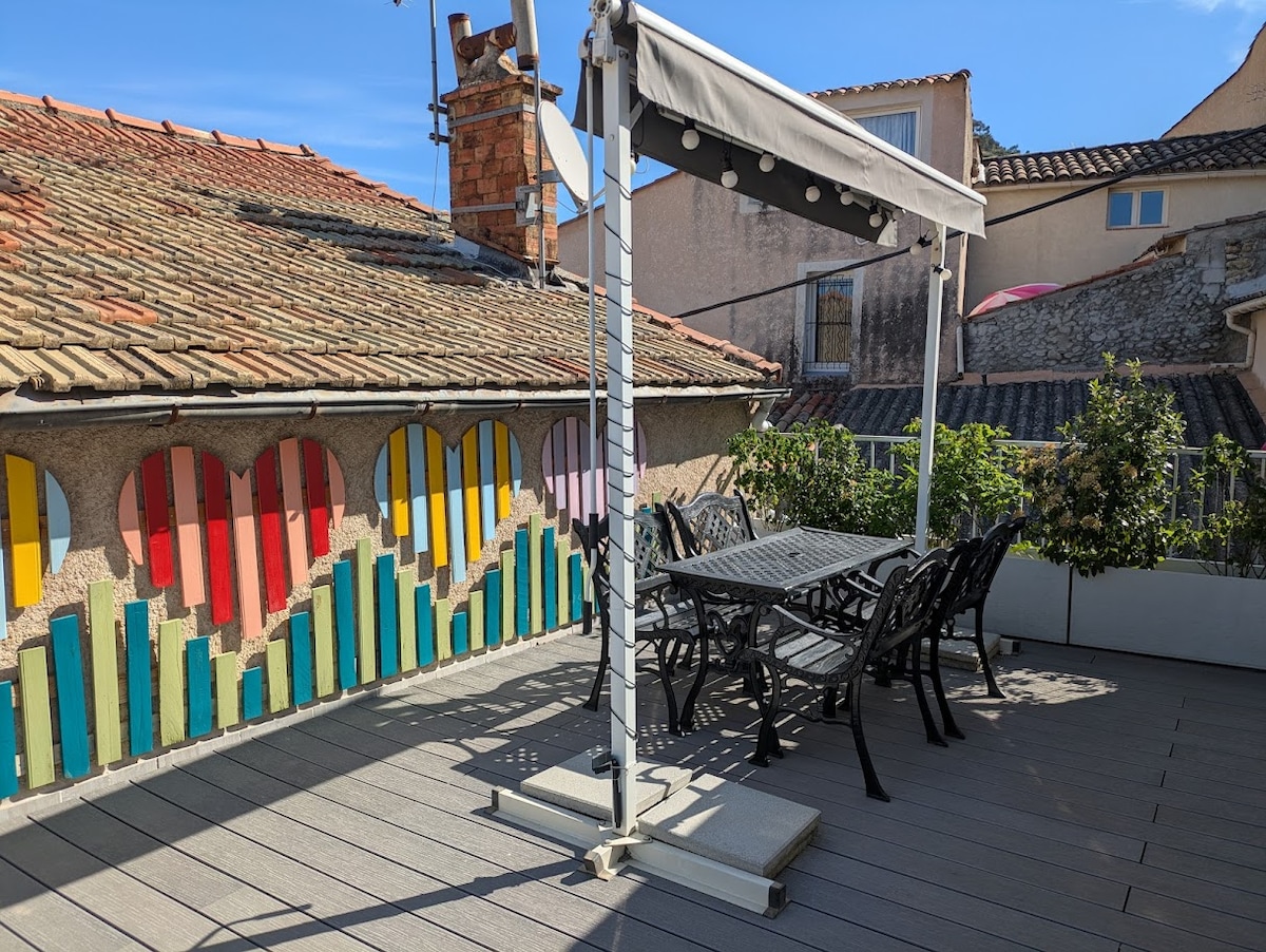 Encantador estudio y su terraza en un pueblo encaramado