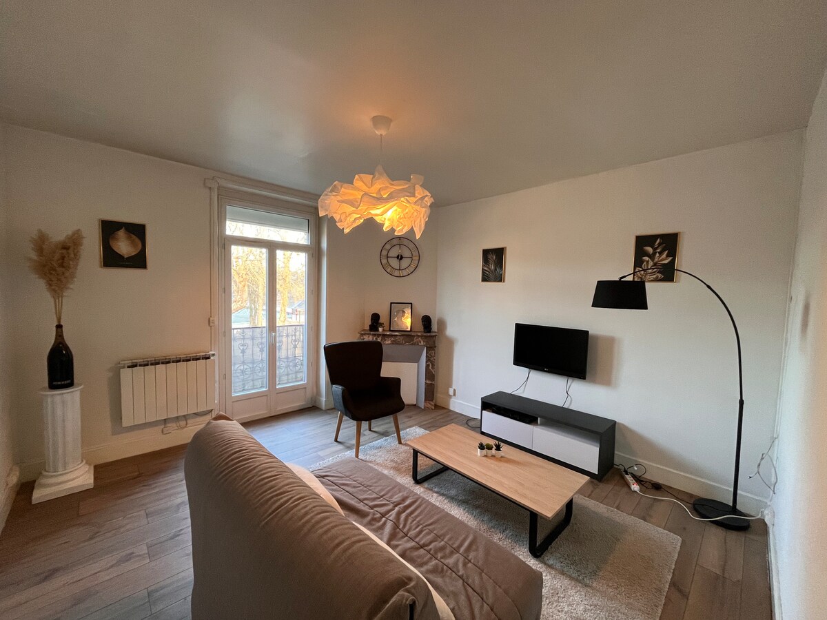 ✨ Estudio de 28 m² renovado con cuidado, situado en el segundo piso de un edificio antiguo en pleno centro de la ciudad de Romorantin. Todo confort: wifi de fibra, ropa de cama incluida, cocina equipada, acogedor rincón para dormir y baño. Ideal para descubrir la Sologne, visitar los castillos de Cheverny/Chambord (30 min) o el zoológico de Beauval (40 min). Perfecto para una estancia en pareja, entre amigos o para un viajero de negocios. ⚠️ Acceso solo por escalera de caracol.