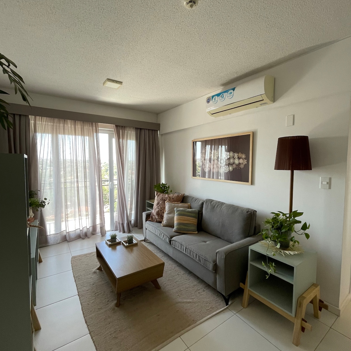 Hermoso y acogedor departamento en un edificio residencial, situado en un barrio muy concurrido con grandes centros comerciales y variedad de restaurantes. Ideal para moverse caminando. Relájate y disfruta de una hermosa piscina en la terraza del edificio, y de un completo gimnasio. El departamento está completamente equipado para 4 personas, tanto para estadías largas como cortas. Tiene 2 habitaciones, un baño completo y un baño social, cocina completa, living comedor, y balcón. Enjoy!