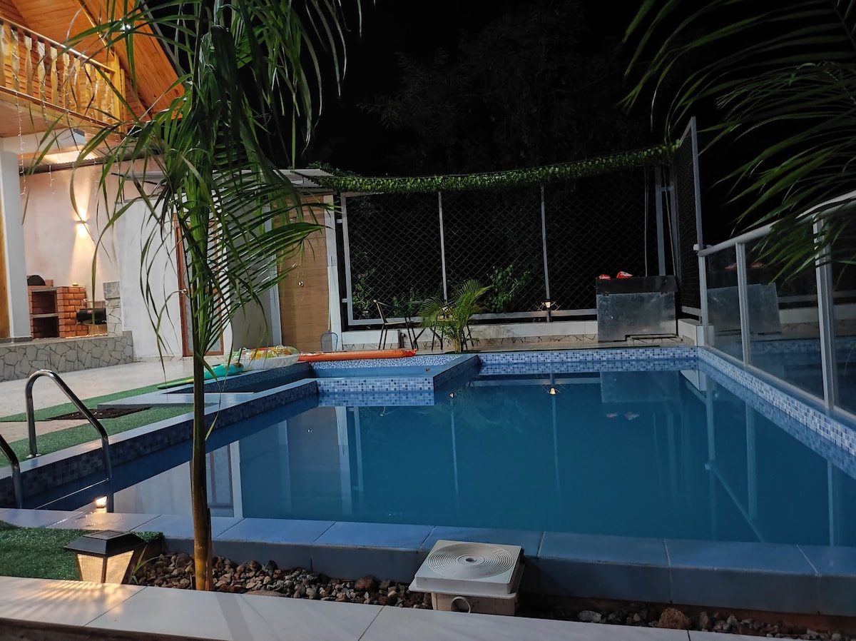 ¿Buscas una escapada inolvidable? Nuestra casa te espera, ubicada en el corazón de la Selva Central, es el refugio perfecto para desconectarte y recargar energías. Relájate y refréscate en nuestra piscina privada. Ideal para pasar tardes soleadas o disfrutar de una noche bajo las estrellas. Ideal para familias y grupo de amigos, espacios amplios y seguros para disfrutar en compañía de tus seres queridos. ¡No esperes más para conocer la Selva Central!