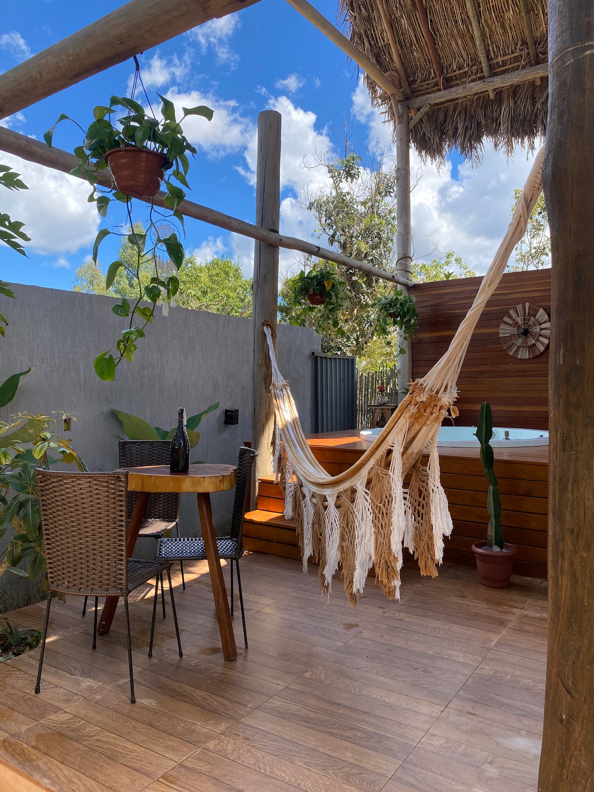 La cabaña Atrium es un refugio romántico con una vista cinematográfica de las montañas de Chapada dos Veadeiros. Desde el balcón o la terraza, admira la Serra da Boa Vista y la inolvidable puesta de sol. A pocos minutos del Parque Nacional y de las principales cascadas, el Átria es el lugar perfecto para relajarse y vivir la magia de Chapada. Aquí, el tiempo se ralentiza. El sol sale entre las montañas, el silencio es profundo y las noches se bañan en un cielo estrellado: una invitación a vivir la Chapada de una manera única