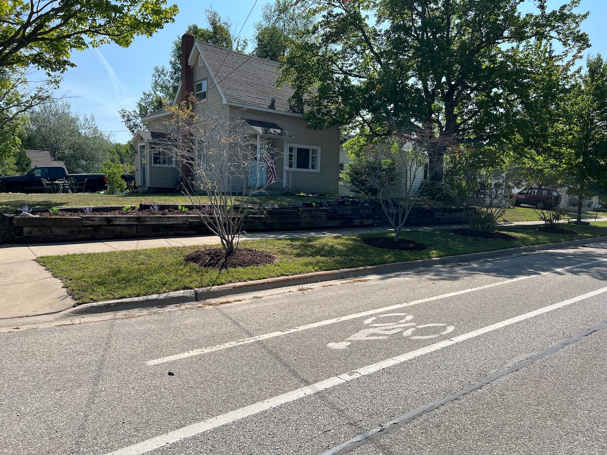 Alójate en una auténtica cabaña de troncos de 1800 que se encuentra entre las 56 hectáreas de bosque y la costa del lago MI, entre North Point Nature Preserve y Mt. ¡McSauba Rec. desconectado de la red! La propiedad de la cabaña (más de un acre) tiene una fogata, rutas de senderismo despejadas en todas partes y un montón de cosas para hacer por todas partes. ¡La playa está a solo 400 pies de distancia y es espectacular! Hay senderos locales para bicicletas, tenis, golf y golf de disco, campos de fútbol, canchas de baloncesto, parque de patinaje, pesca, senderismo, hermosas playas