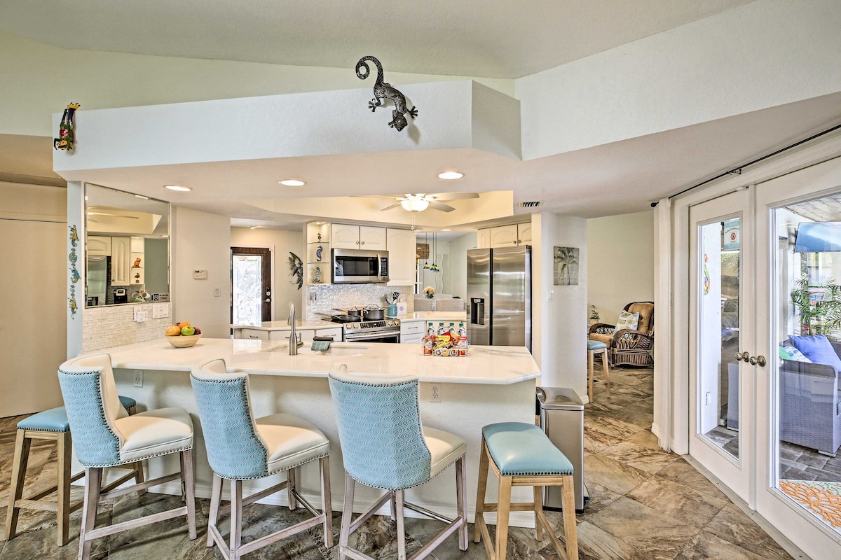 Casa recién remodelada que está diseñada para el entretenimiento y la relajación en familia. El diseño abierto permite disfrutar de las constantes brisas frente al mar mientras te relajas con la familia, te das un baño en la piscina o ves a los manatíes descansar en el canal que tiene acceso directo al puerto de Charlotte y al golfo. La casa se encuentra dentro de la comunidad de golf Burnt Store Isles (Twin Isles Country Club, a 3 minutos en coche) con centros comerciales cercanos, Fisherman's Village y el centro de Punta Gorda.