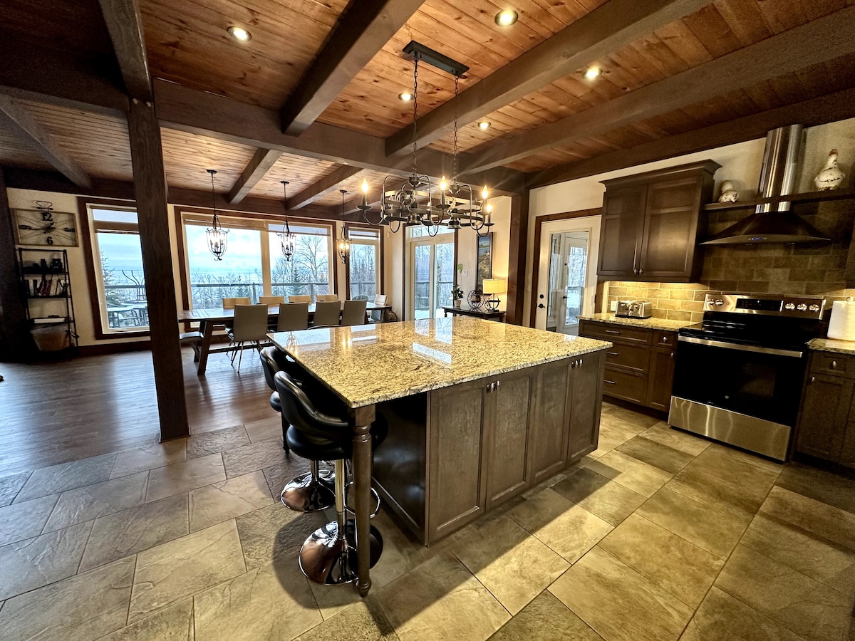 A unique chalet where rustic charm meets elegance. Enjoy the spectacular views of Mount Massif and the river while savoring your coffee before putting on your skis for an unforgettable day! Spacious and cozy, this haven of peace comfortably accommodates up to 13 guests. Its prime location, nestled between nature and culture, puts you just minutes away from many trails and Baie-Saint-Paul’s most popular attractions. A perfect setting for memorable stays in any season.