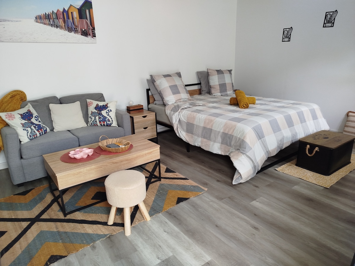 Olvídate de tus preocupaciones en este alojamiento espacioso y sereno. Cama de un metro sesenta, sofá cama de 1 plaza, televisión con canal +, cocina equipada, baño con ducha,aseo . Disponibles: libros,revistas,juegos de mesa,plancha y secador de pelo. Pequeña terraza exterior con barbacoa,mesa y sillas,garaje de motocicleta. No dude en preguntarme,si le falta algo,estaré encantado de poder ayudarlo. Con suplementos: traslados, desayuno.
