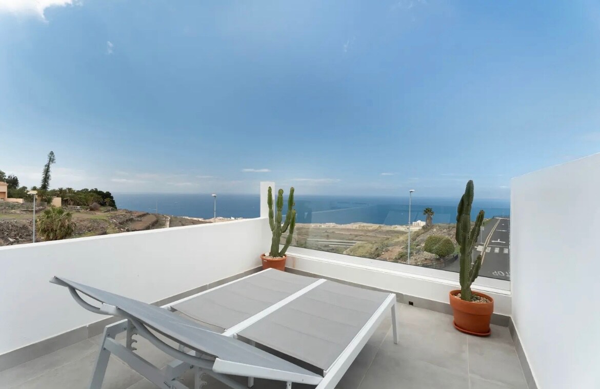 Completely renovated villa, with heated Jacuzzi in Chayofa. The villa consists of two bedrooms each with en suite bathroom, a large space dedicated to the kitchen and living room, with an exceptional sea view. Terrace with table, chairs, wooden pergola and sun loungers. Garden of about 300 m2, full of plants, a sunbathing area with loungers and chairs, umbrellas and a fantastic private heated hot tube .Guests can also use the large community swimming pool which is located right in front .