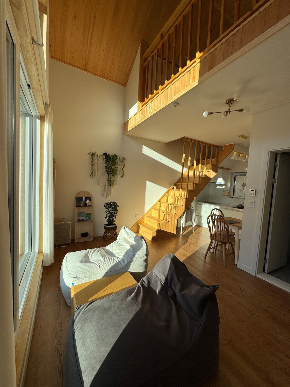 머물다B1- 내추럴 우드앤화이트 깔끔하고 편안한 복층 독채 숙소, 개별캠핑 바베큐존