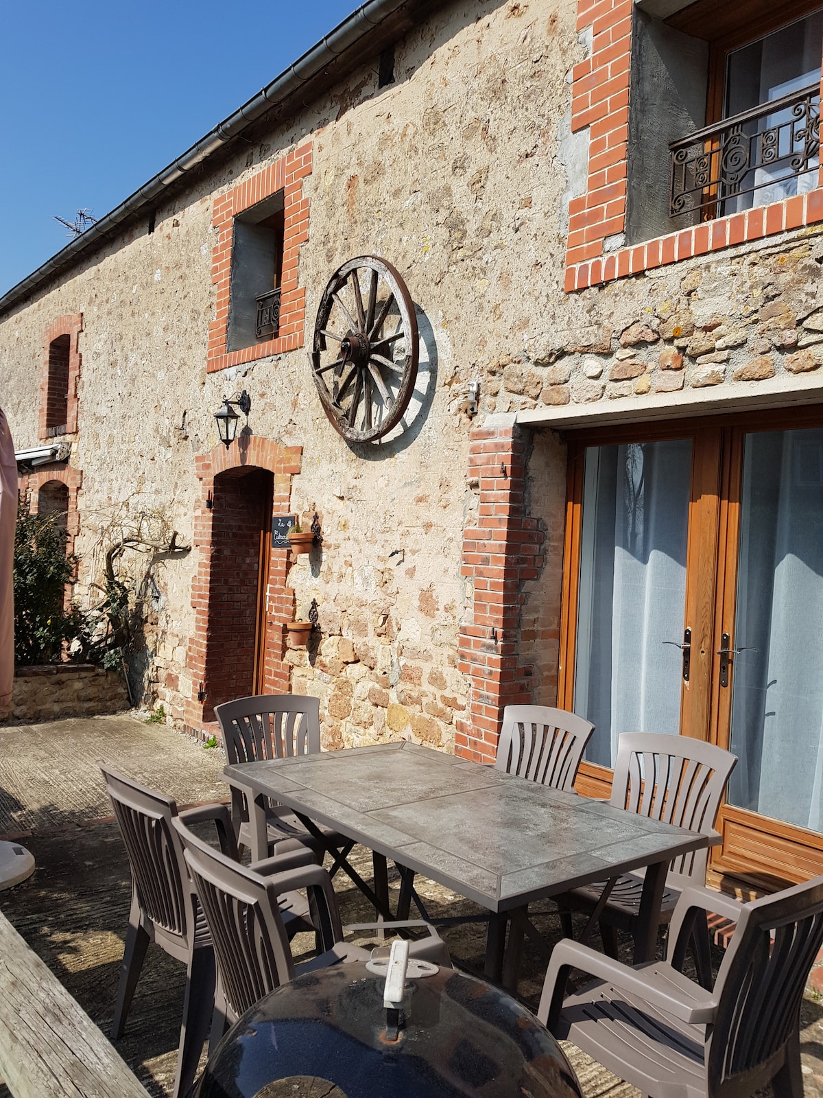 Casa rural para 2 a 4 personas, para los amantes de la naturaleza que buscan tranquilidad y autenticidad. Se ha realizado en un antiguo granero contiguo a la vivienda de los propietarios, típico del patrimonio de tierra y piedra de las marismas de Cotentin. Casa rural independiente, con plaza de aparcamiento y patio privado rodeado de vegetación, barbacoa y muebles de jardín.