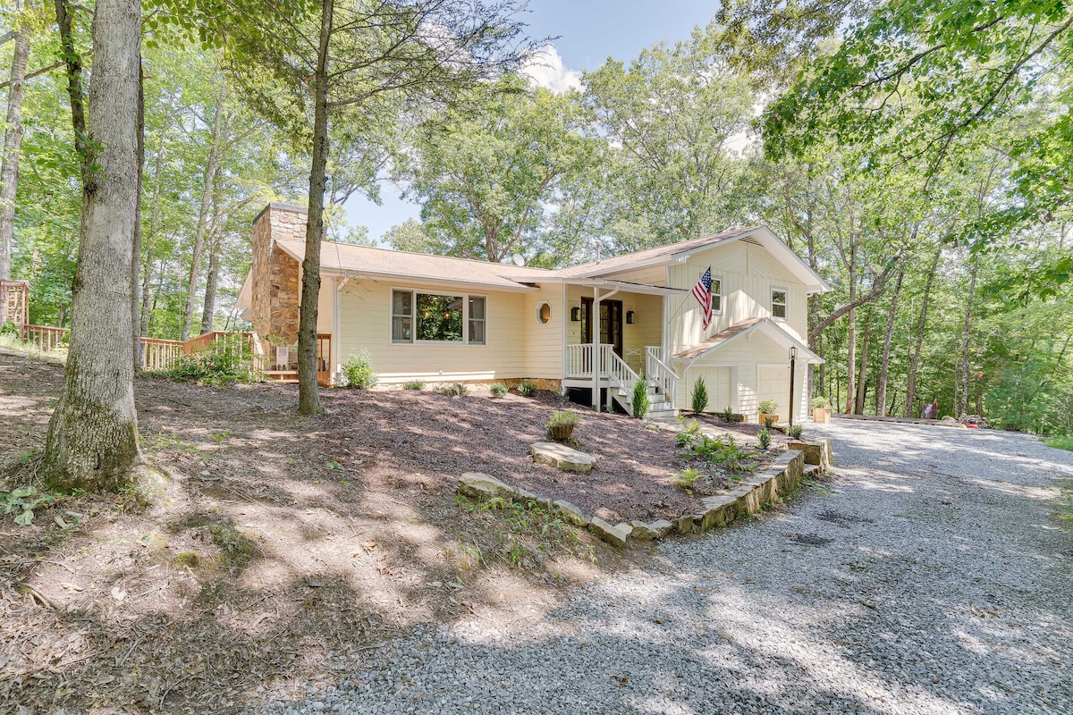 Lugar para hacer fogata de leña | Senderismo en el lugar | Senderos al río Ubicado junto a las Grandes Montañas Humeantes, este espacioso alquiler vacacional de 4 dormitorios y 3 baños de Hayesville ofrece una escapada perfecta junto al río con pesca, tubing, kayak y senderismo. Comienza la mañana con un café en el solárium, luego dirígete al río o echa un vistazo a restaurantes cercanos, puertos deportivos de Lake Chatuge o Chatuge Dam Trail. ¡Termina cada día relajándote en la terraza de la casa del árbol y luego reuniéndote alrededor de la fogata para s'mores bajo las estrellas!