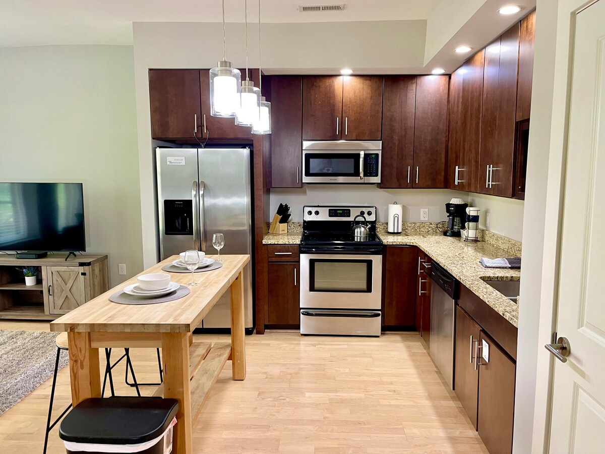 Este lujoso apartamento es perfecto para enfermeras, profesionales, viajeros solos o parejas. La cocina totalmente equipada cuenta con una freidora de aire, una olla de cocción lenta, una barra de café y una máquina Bartesian para que te sientas como en casa. El complejo de apartamentos ofrece servicios increíbles, que incluyen una terraza en la azotea, dos patios, una piscina, sala de yoga, gimnasio en el lugar y un moderno espacio de coworking. Adéntrate en este espacio de lujo totalmente amueblado, donde cada detalle ha sido diseñado pensando en tu comodidad.