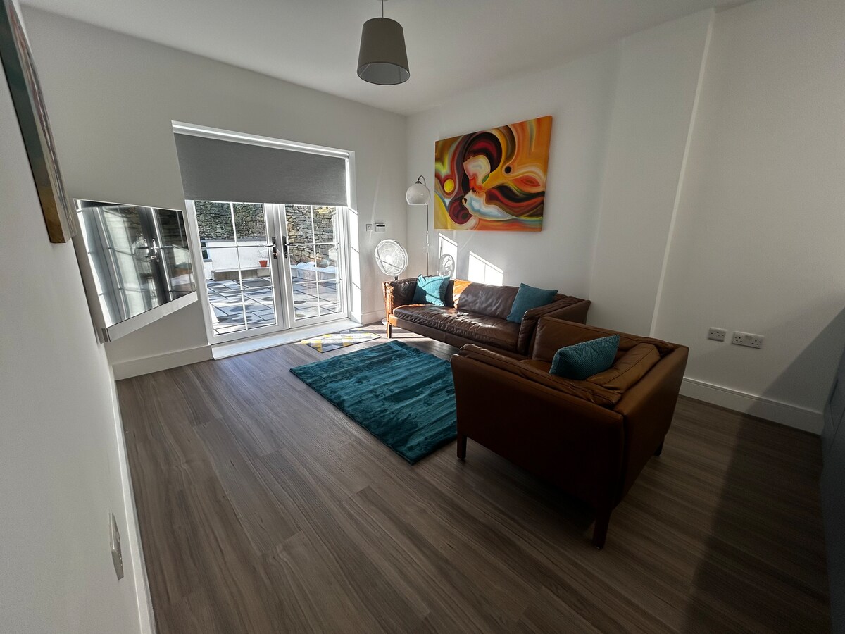 Litton Mill es un antiguo molino de agua convertido en un hermoso edificio ubicado justo en el corazón del parque nacional Peak District, a pocos minutos a pie del sendero de Monsal. El apartamento ha sido reformado recientemente y cuenta con una impresionante sala de estar de planta abierta de 640 pies cuadrados, comedor y cocina, así como dos amplios dormitorios con baño privado, cada uno con camas tamaño king (que se pueden convertir en dos camas individuales si es necesario) con una pequeña cama individual adicional extraíble en cada habitación.