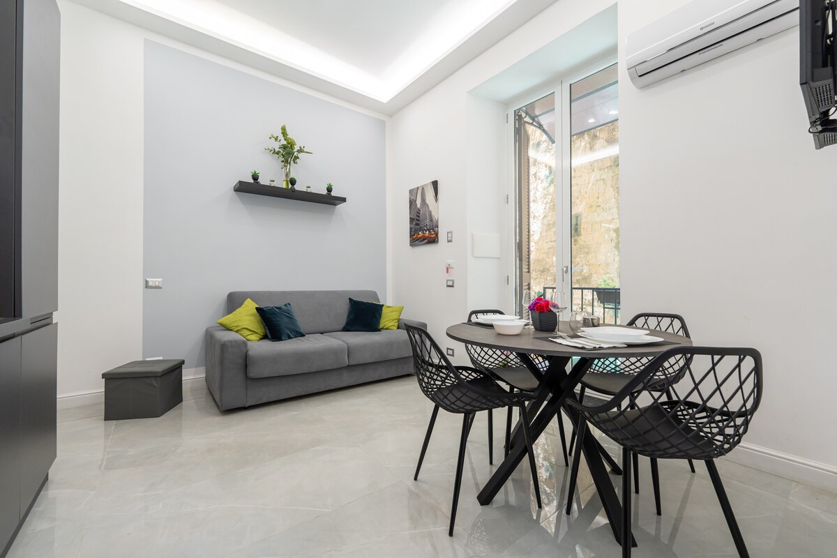 Amplio apartamento de 70 metros cuadrados con jardín privado de 48 metros cuadrados. Tiene 2 dormitorios, 2 baños, 2 cocinas equipadas y un cómodo sofá cama doble. Ideal para familias y grupos: 4 aires acondicionados, 4 televisores, 2 cafeteras, 2 hornos, lavadora, wifi, secador de pelo, plancha, barbacoa y todo lo necesario para una estancia cómoda. La ubicación es genial, está a 2 minutos a pie del metro y el funicular, lo que te permite visitar Nápoles cómodamente en su totalidad.